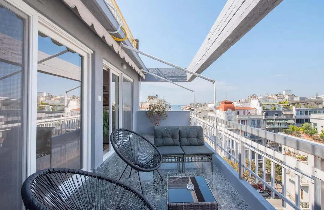 Daphne By Halu! : Downtown Family Penthouse Lejlighed ferielejlighed ligger i Thessaloníki, 20 km fra Thessaloniki lufthavn, og tilbyder WiFi i hele ejendommen. Udstyret med et fuldt udstyret køkken med kaffemaskiner/tekedler, et køleskab og en ovn, tilbyder indkvarteringen også en balkon, kaffe- og tefaciliteter, et fladskærms TV med satellitkanaler på værelserne.